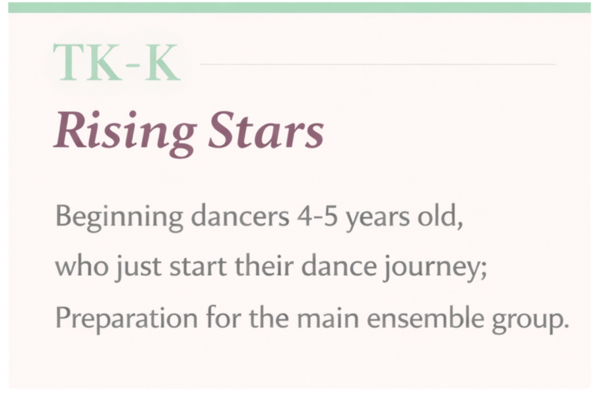 For very young children — 4 and 5 years old — the most important thing a dance program can give them is joy, rhythm, and the experience of belonging to something with ceremony. Technique comes later. The Rising Stars program is built on exactly that.